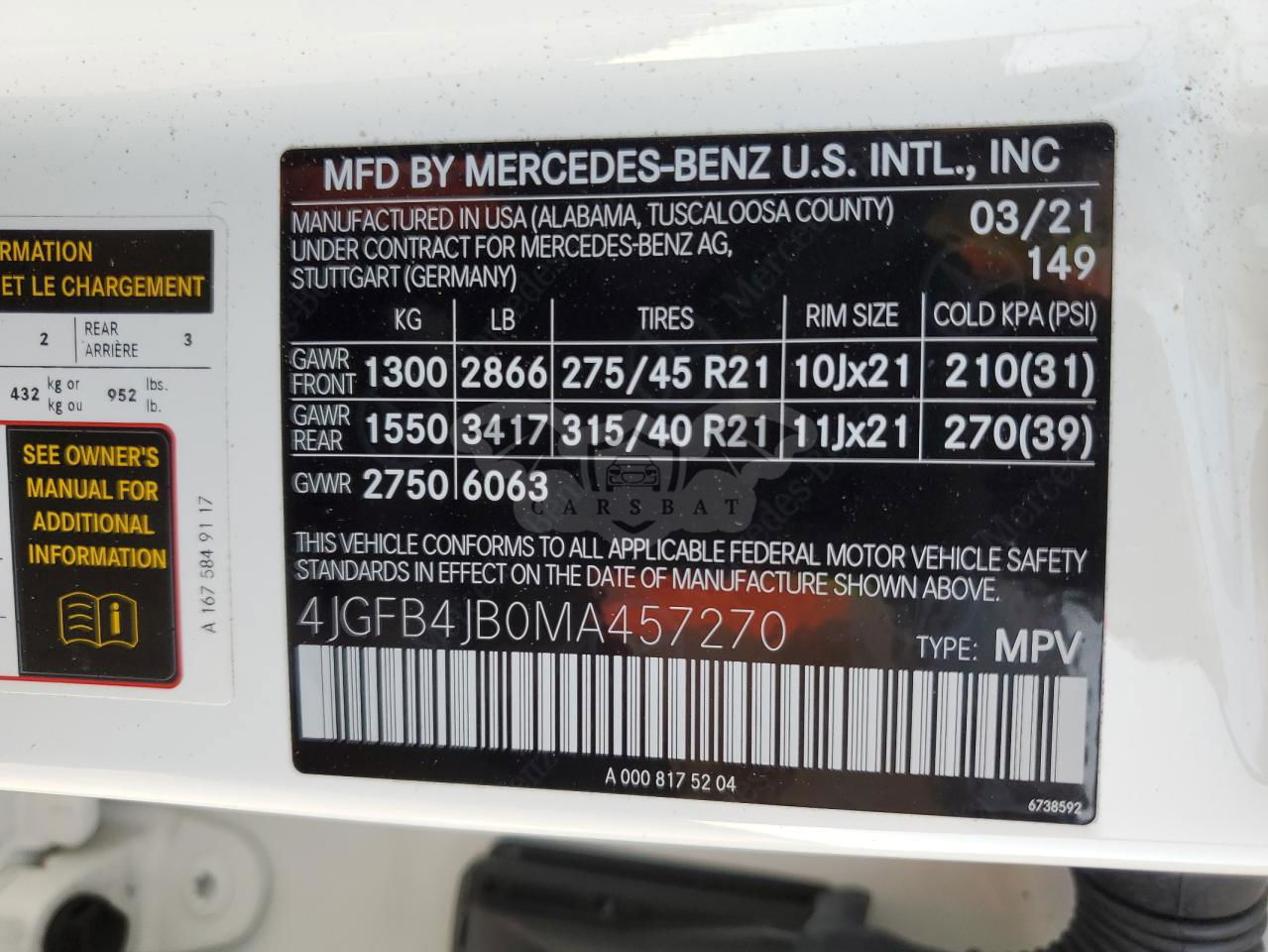• VIN: 4JGFB4JB0MA457270