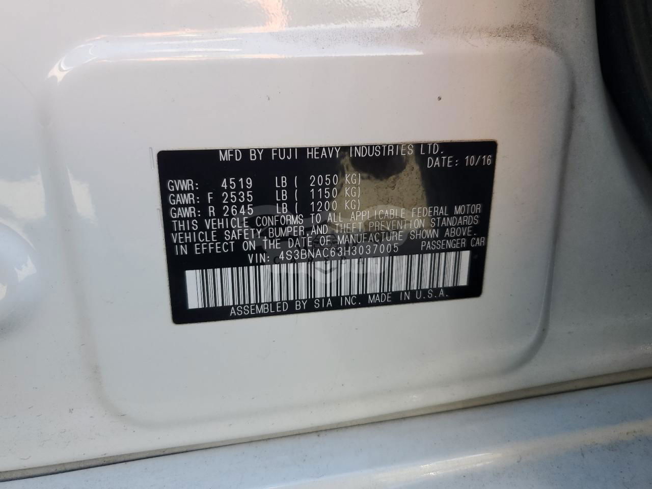 • VIN: 4S3BNAC63H3037005