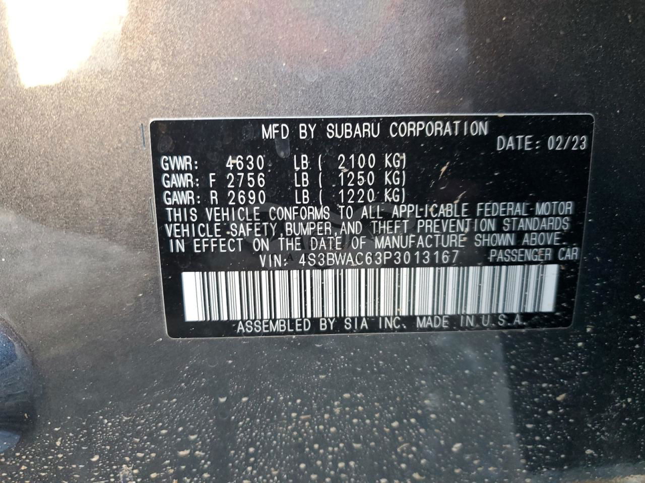 • VIN: 4S3BWAC63P3013167