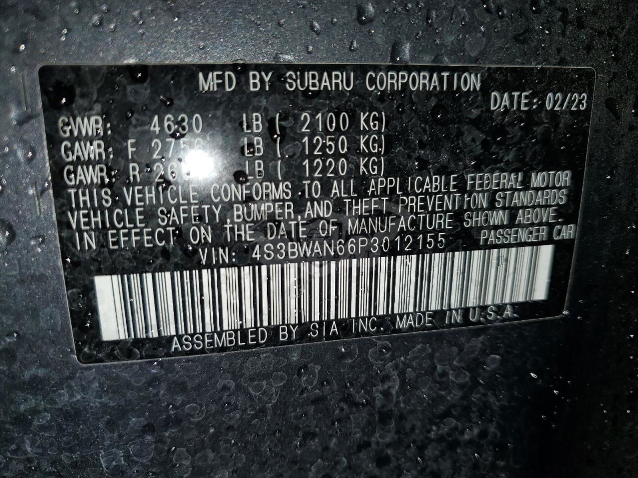 • VIN: 4S3BWAN66P3012155