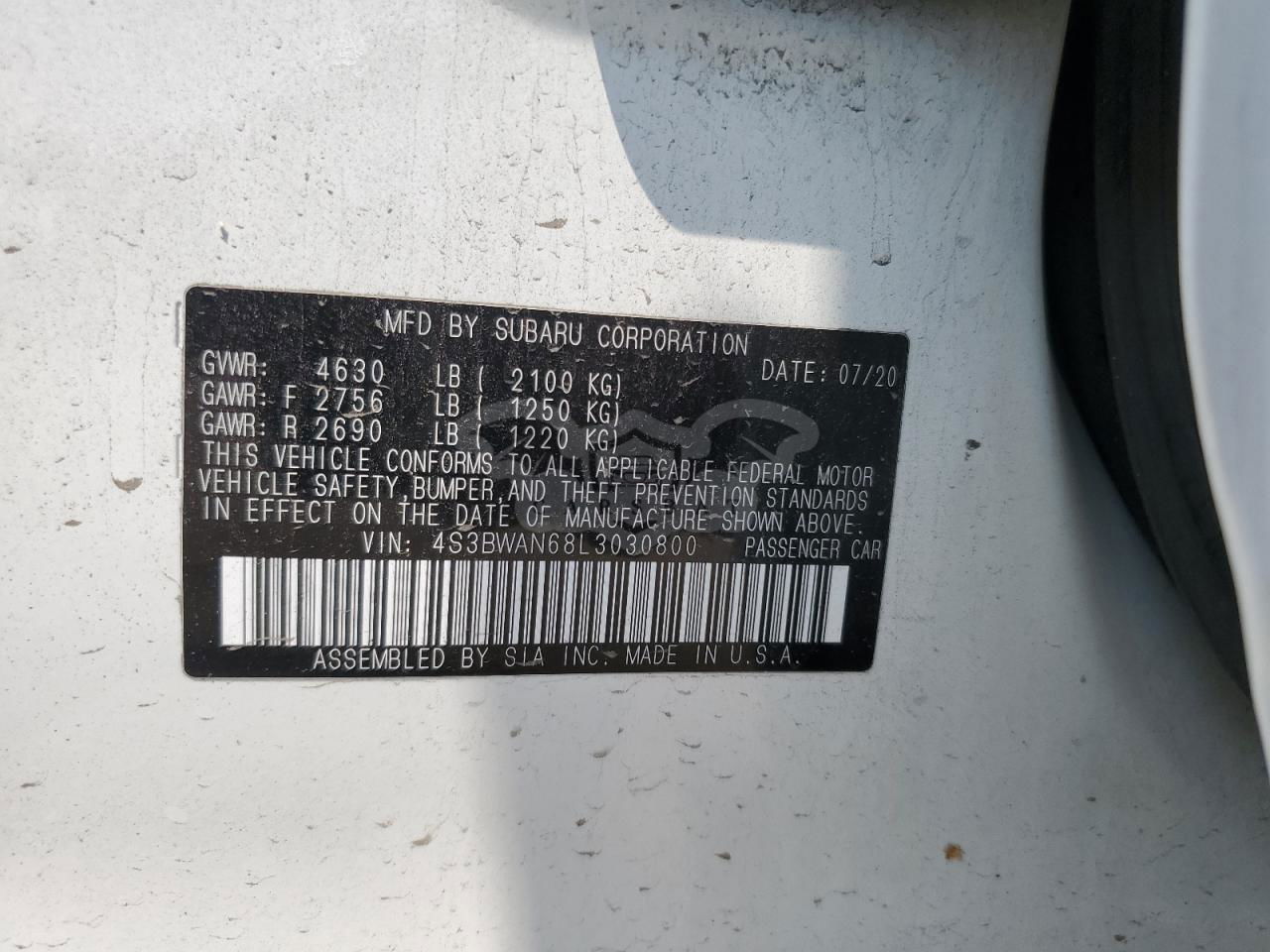 • VIN: 4S3BWAN68L3030800