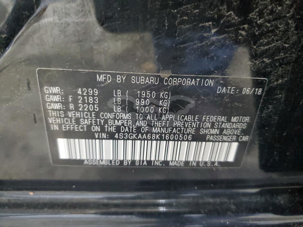 • VIN: 4S3GKAA68K1600506