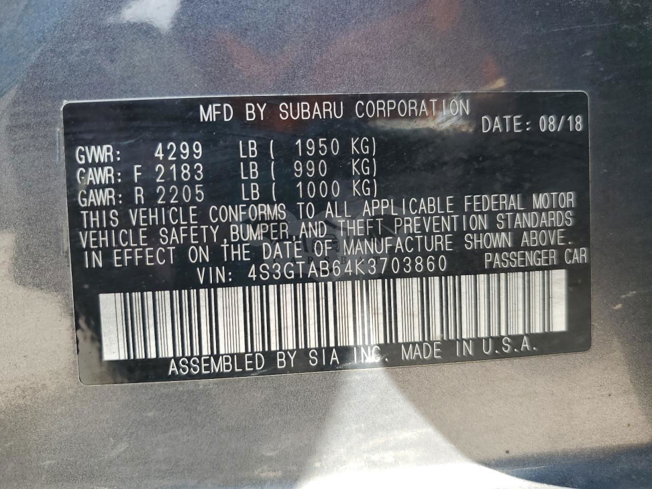• VIN: 4S3GTAB64K3703860