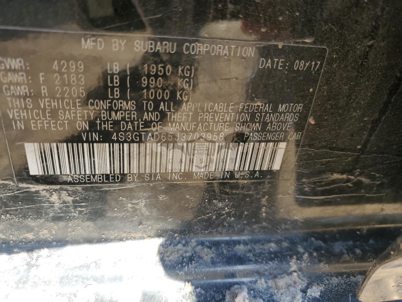 • VIN: 4S3GTAD65J3703958