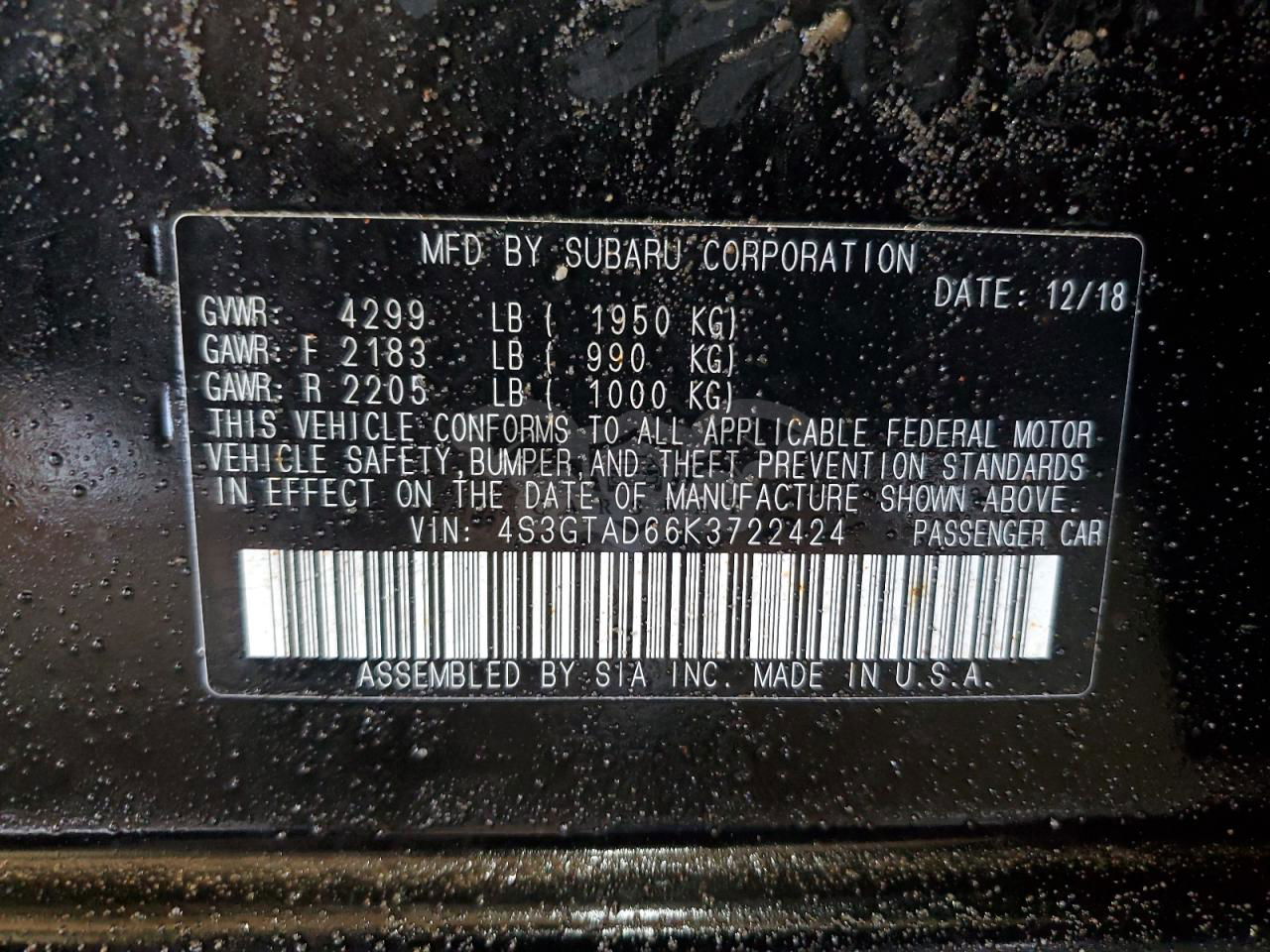 • VIN: 4S3GTAD66K3722424