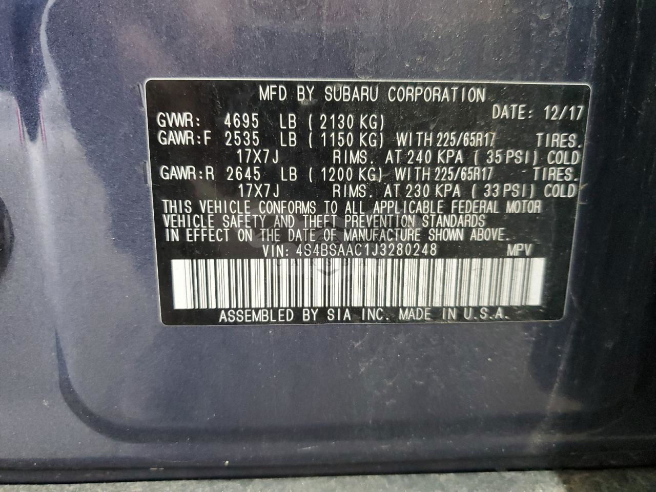 • VIN: 4S4BSAAC1J3280248