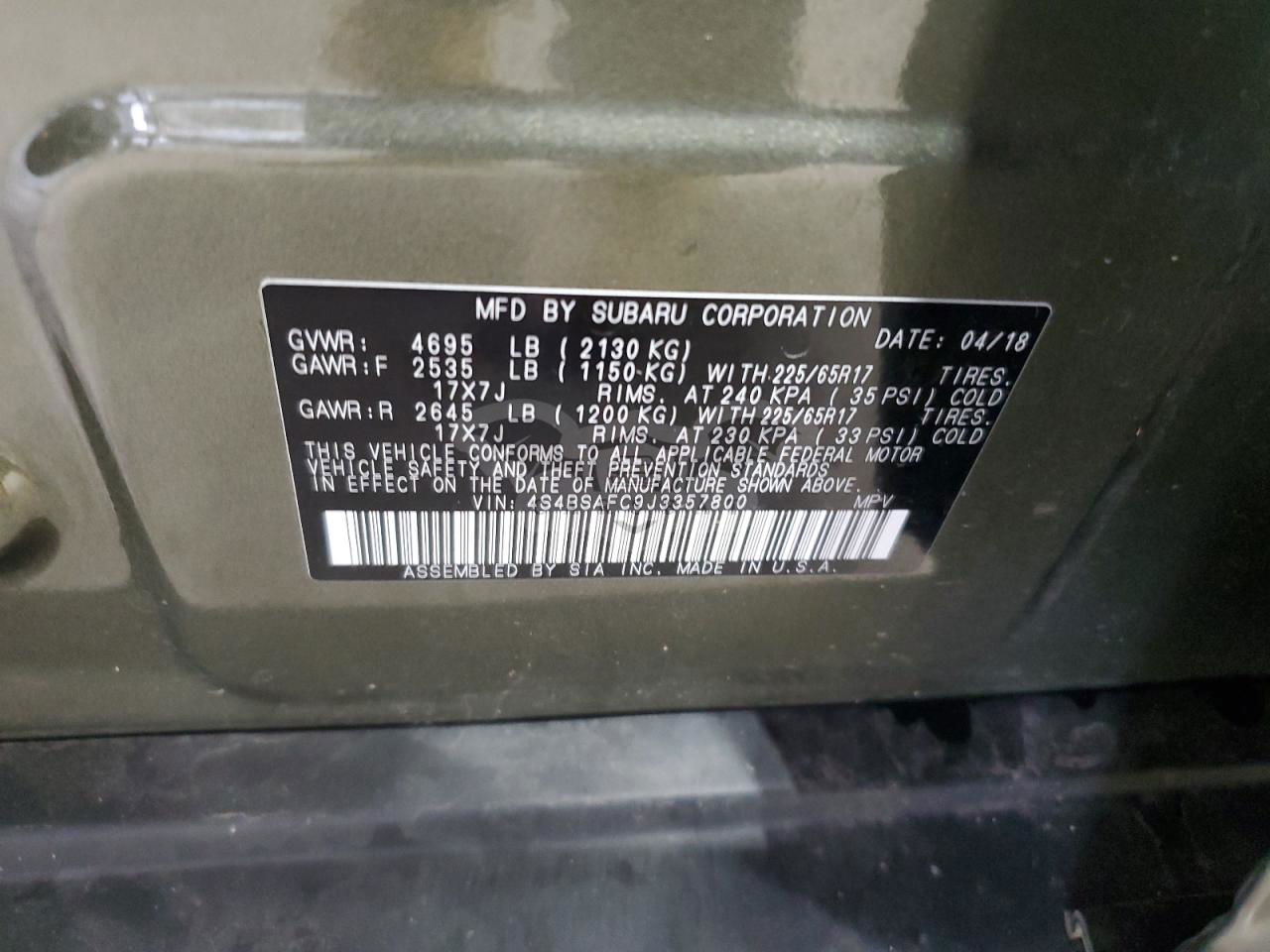 • VIN: 4S4BSAFC9J3357800