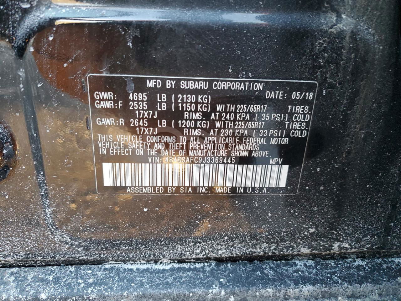 • VIN: 4S4BSAFC9J3369445