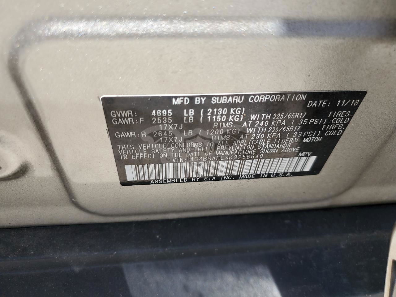 • VIN: 4S4BSAFCXK3256640