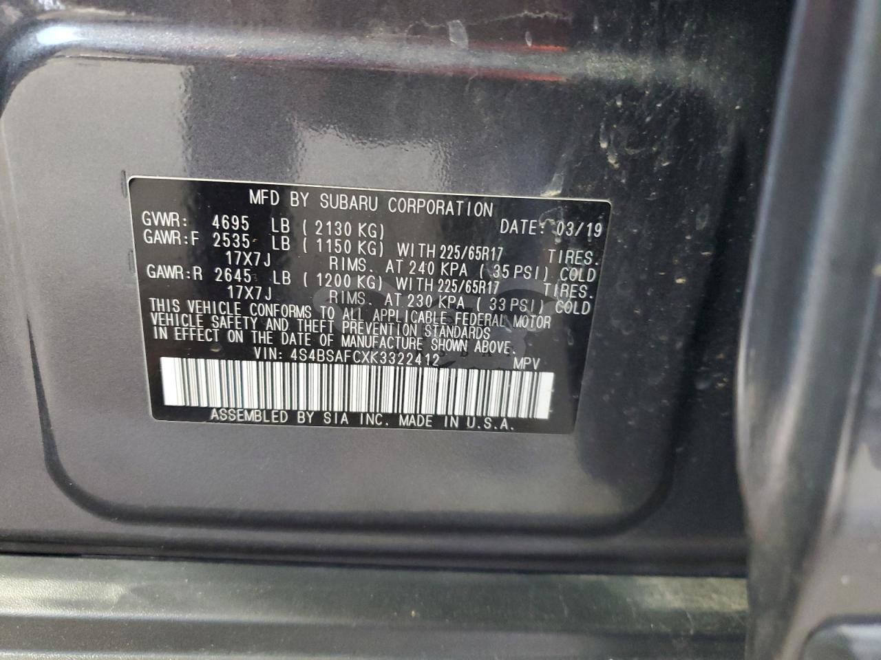 • VIN: 4S4BSAFCXK3322412