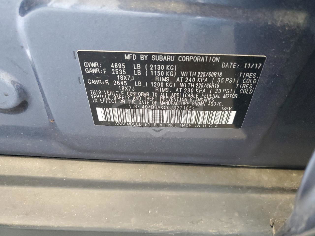 • VIN: 4S4BSAKC0J3271054
