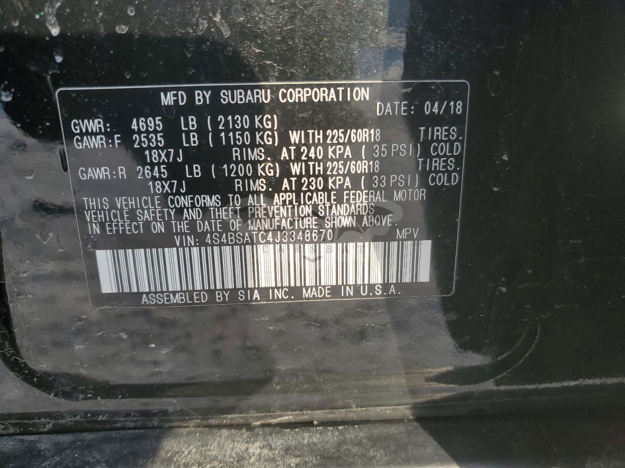 • VIN: 4S4BSATC4J3348670