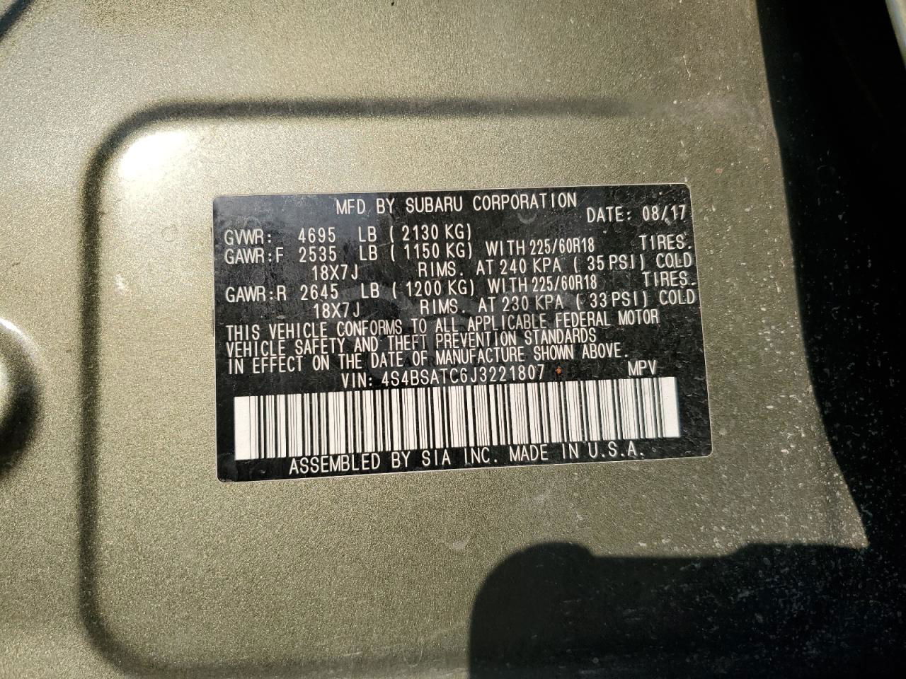 • VIN: 4S4BSATC6J3221807