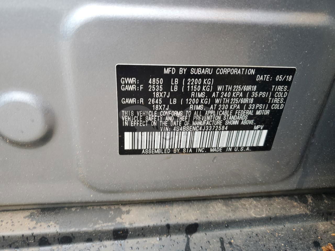 • VIN: 4S4BSENC4J3372584