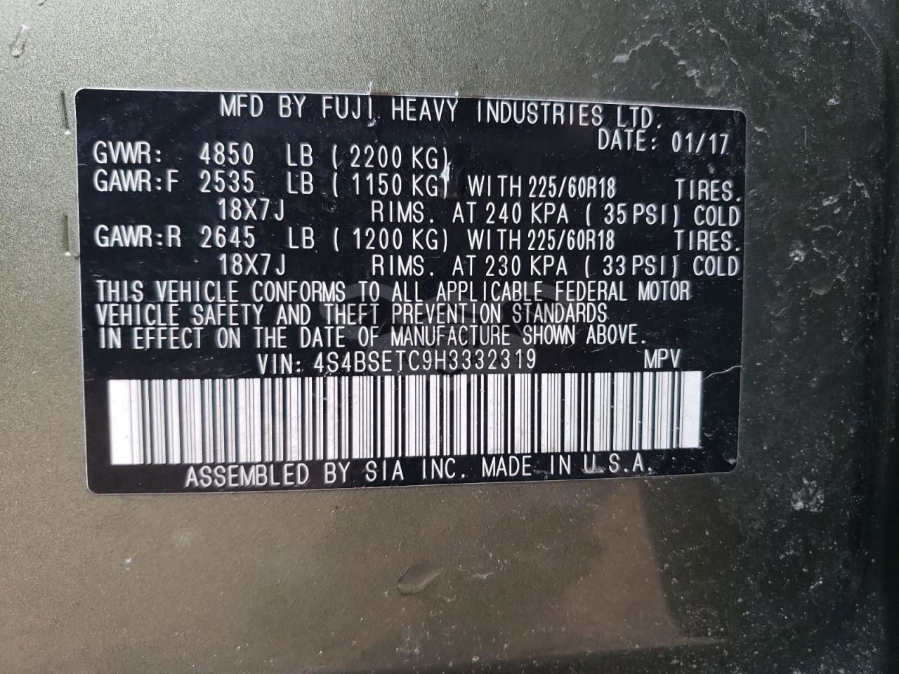 • VIN: 4S4BSETC9H3332319