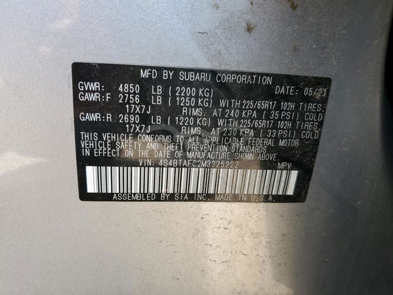 • VIN: 4S4BTAFC2M3225222
