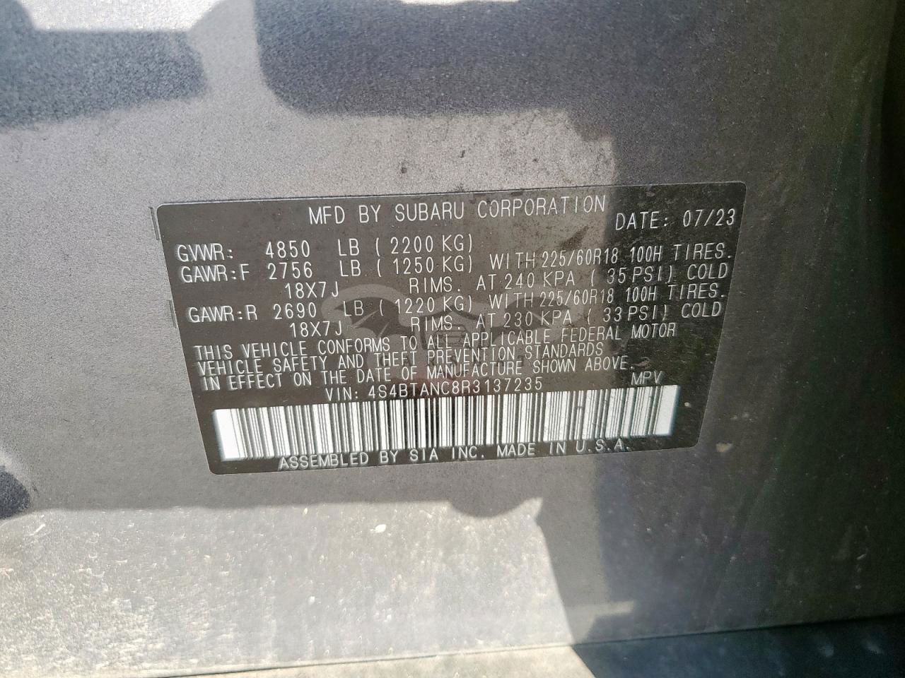 • VIN: 4S4BTANC8R3137235