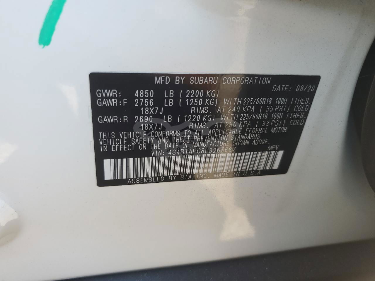 • VIN: 4S4BTAPC8L3265687