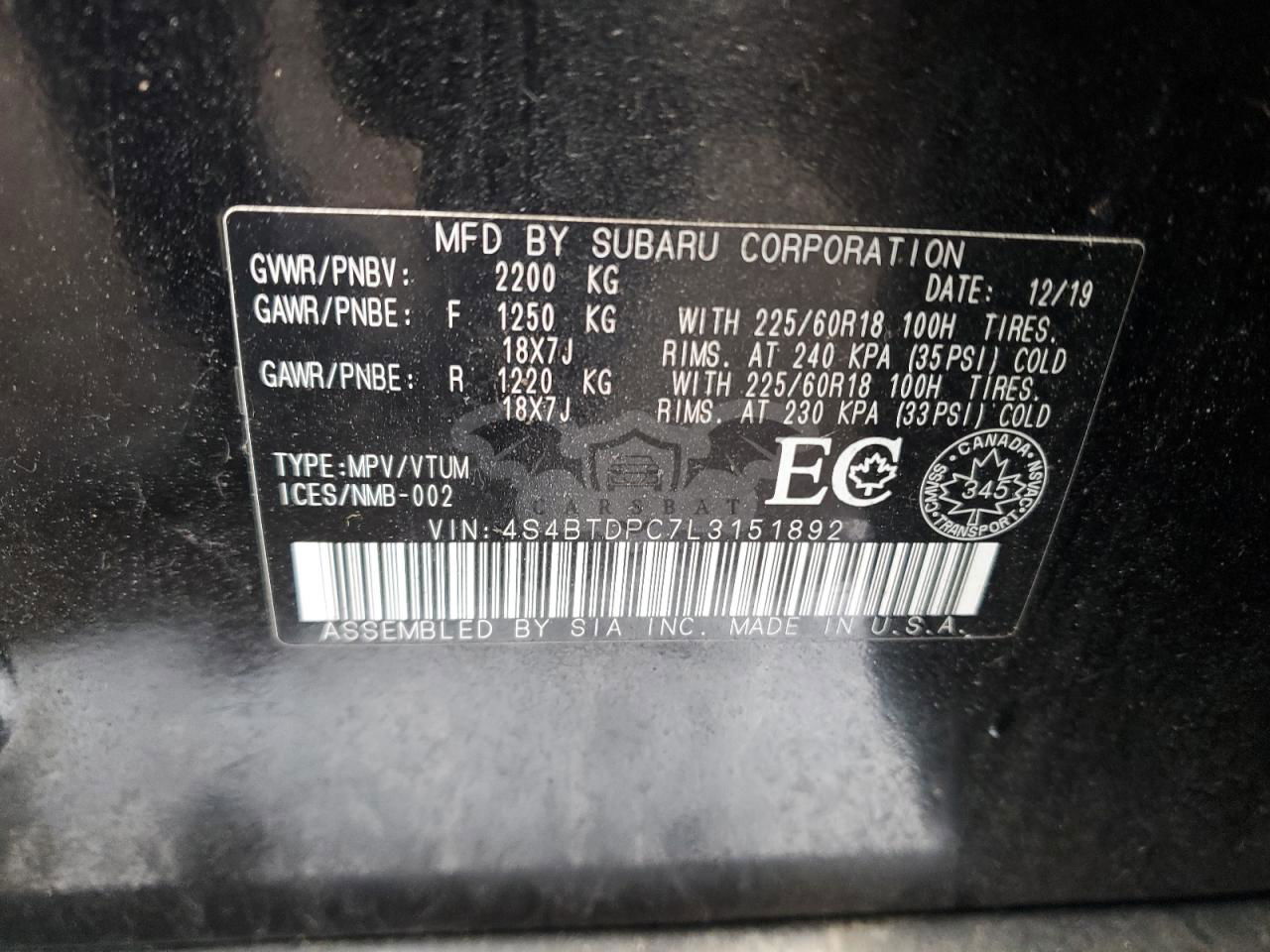 • VIN: 4S4BTDPC7L3151892