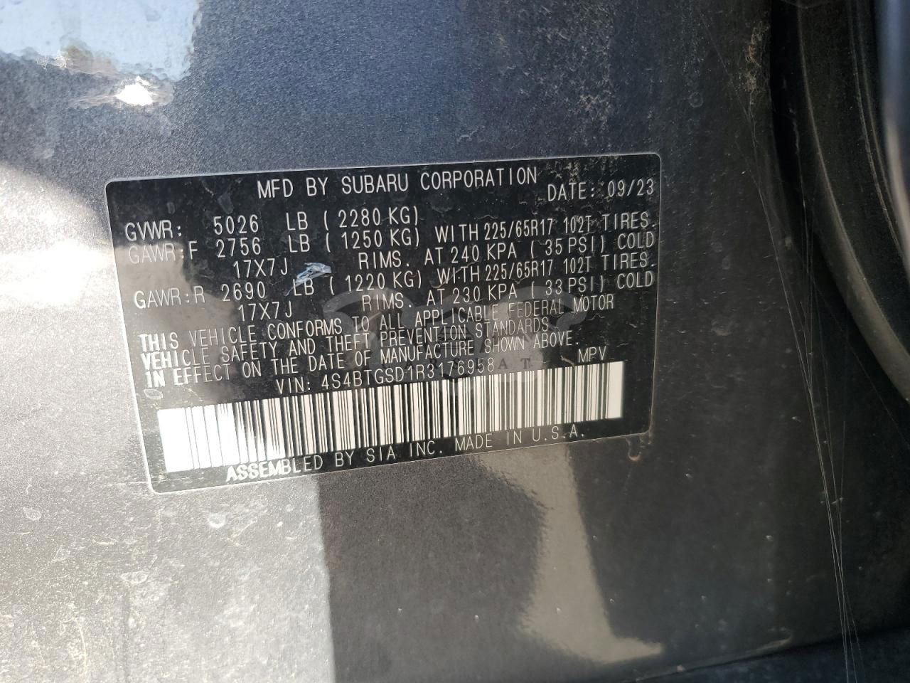 • VIN: 4S4BTGSD1R3176958