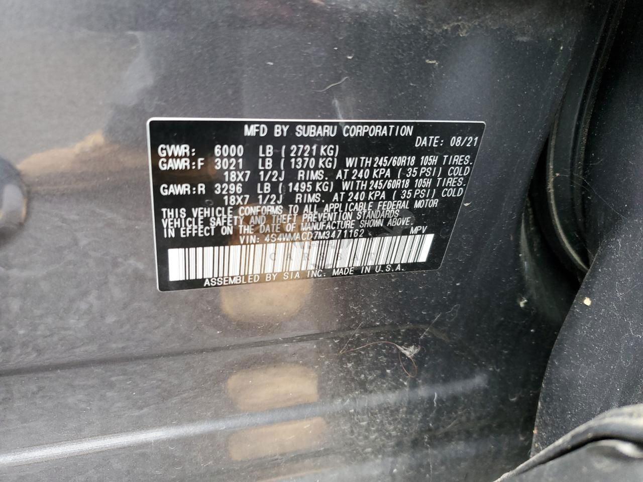 • VIN: 4S4WMACD7M3471162