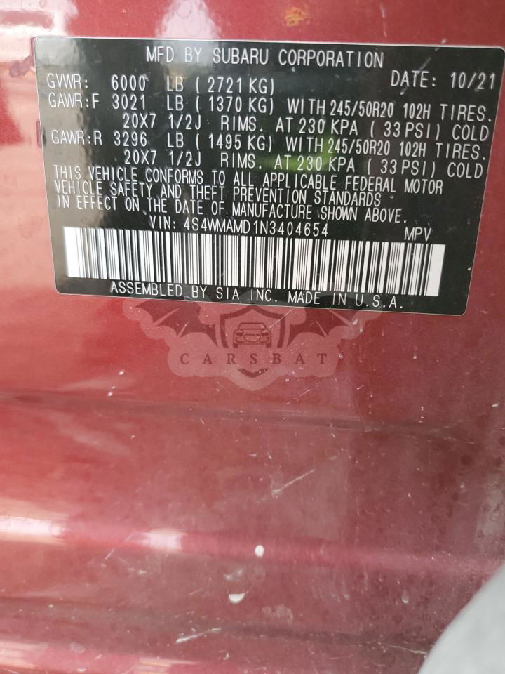 Czerwony Subaru Ascent LIMITED 2.4L 4 2022 roku | Benzyna