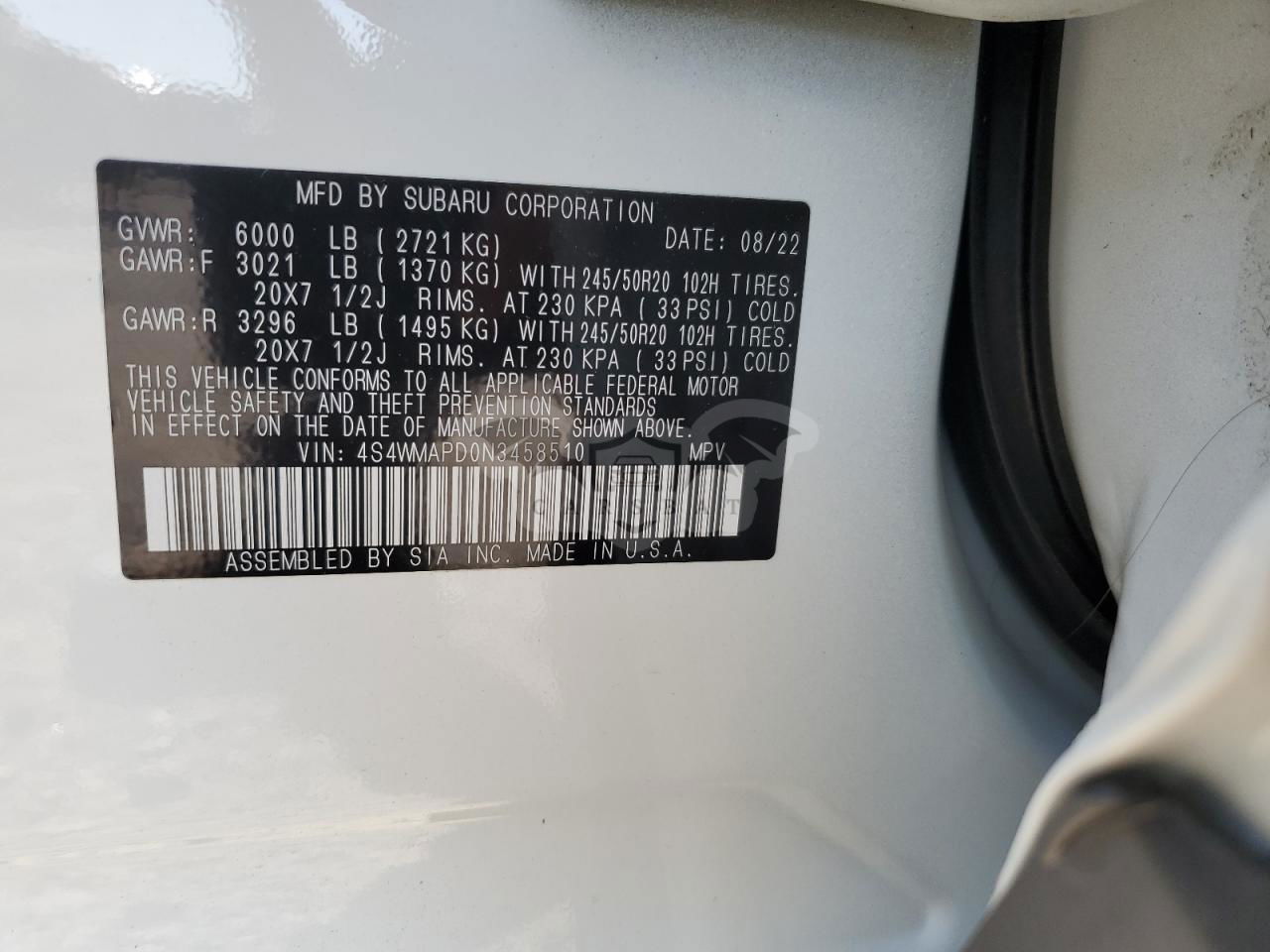 • VIN: 4S4WMAPD0N3458510
