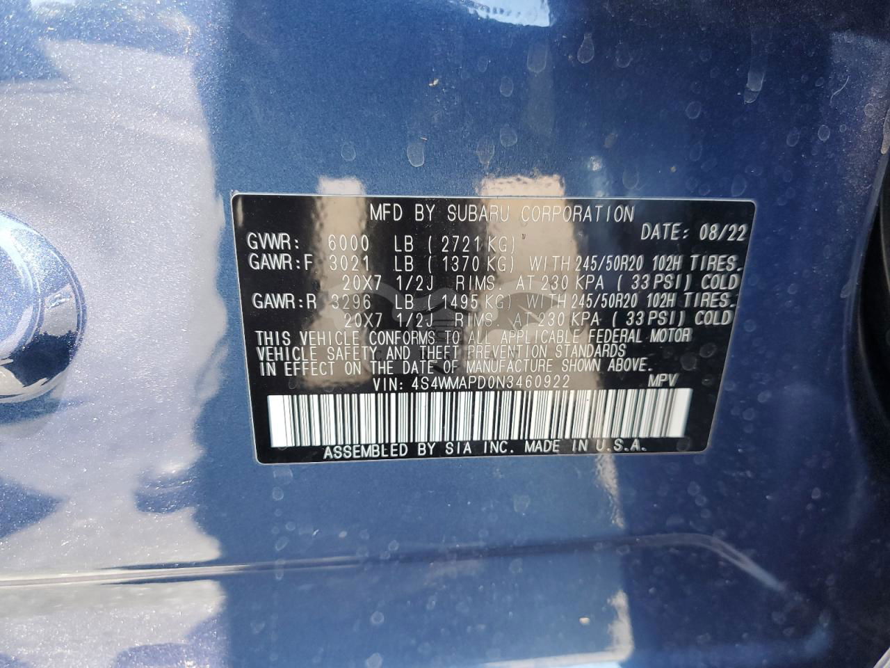 • VIN: 4S4WMAPD0N3460922