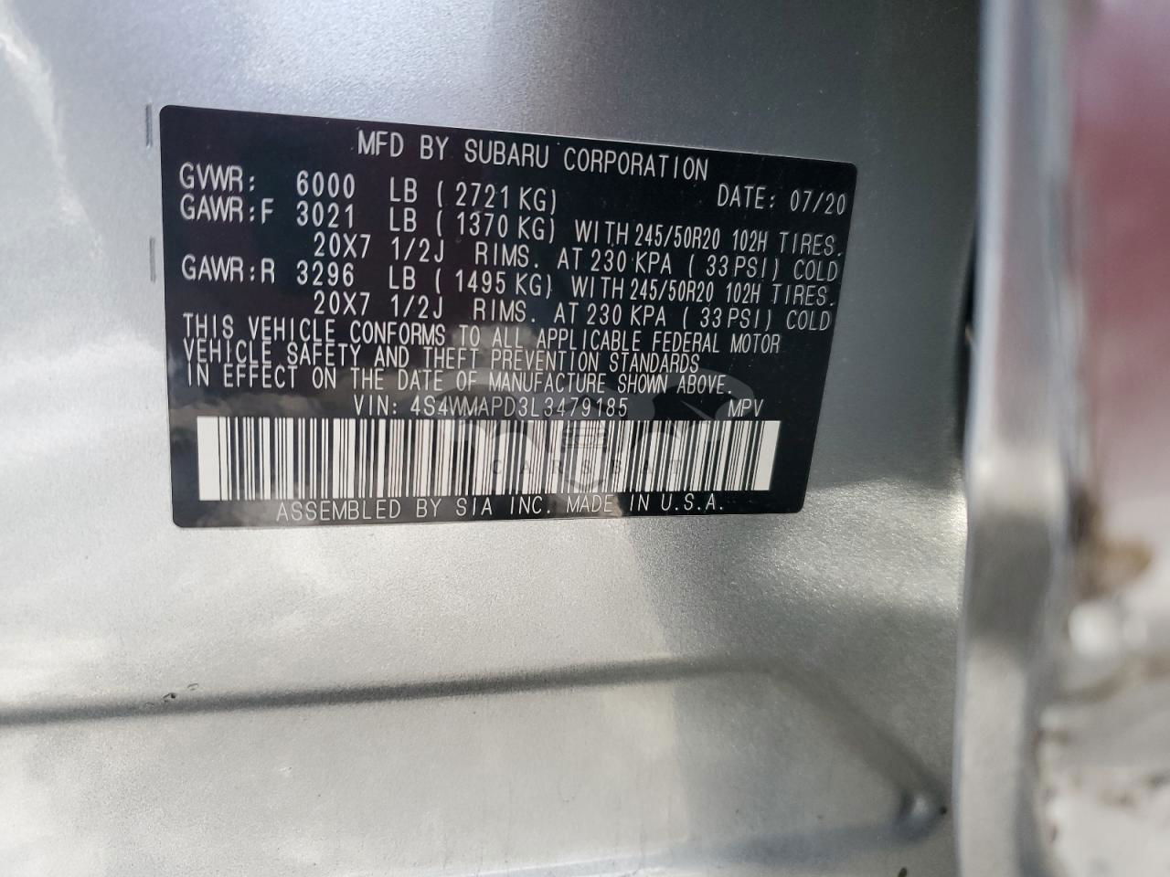 • VIN: 4S4WMAPD3L3479185
