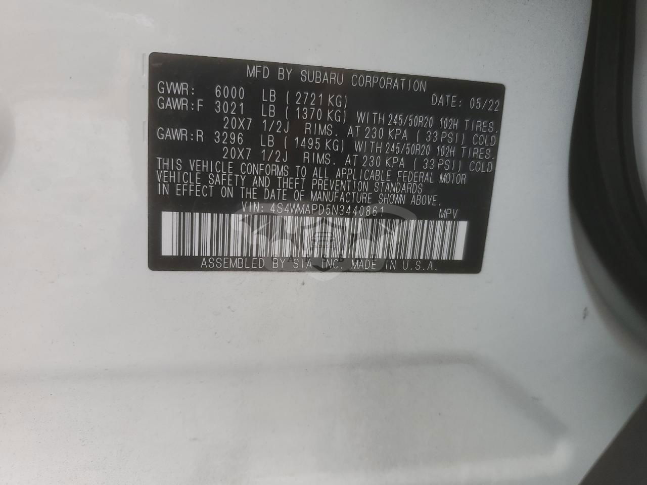 • VIN: 4S4WMAPD5N3440861