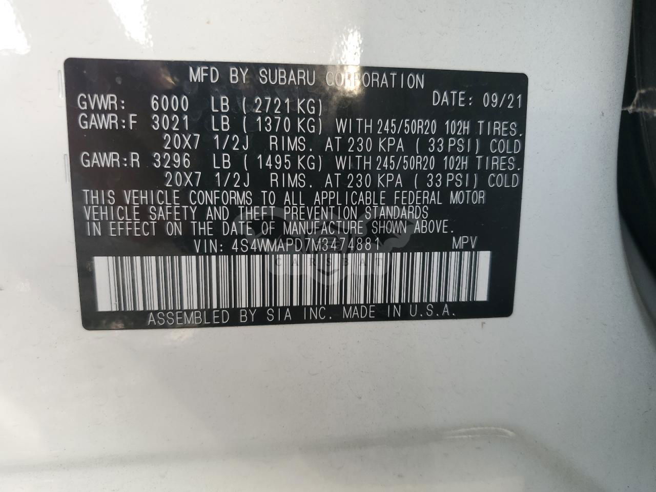 • VIN: 4S4WMAPD7M3474881
