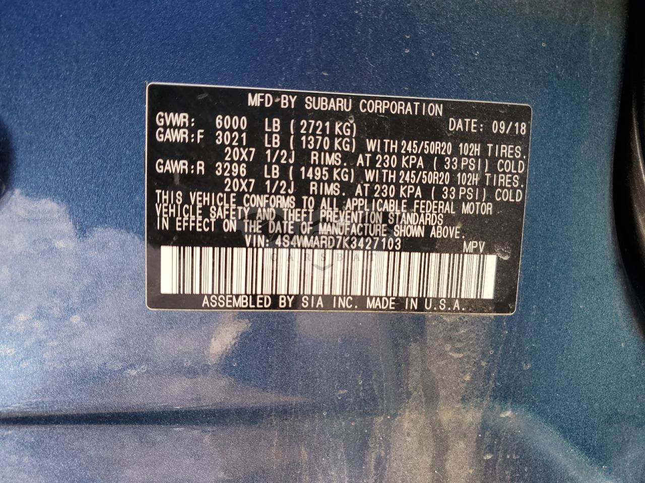 • VIN: 4S4WMARD7K3427103