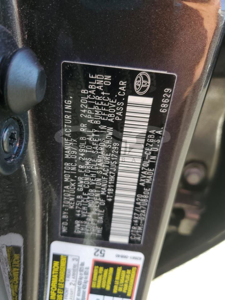• VIN: 4T1B11HK7JU517299