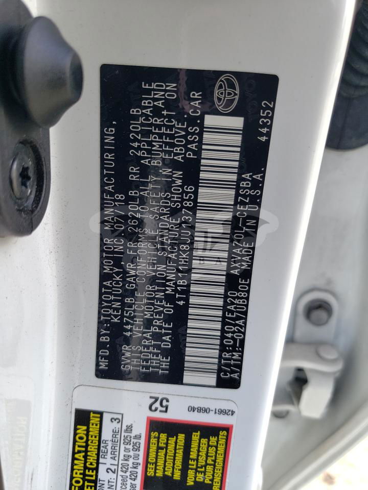• VIN: 4T1B11HK8JU137856