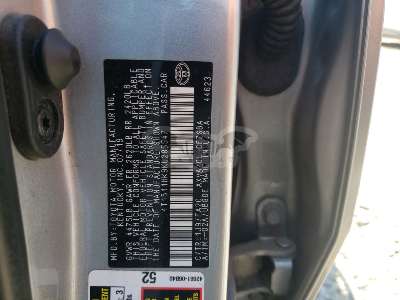 • VIN: 4T1B11HK9KU285547