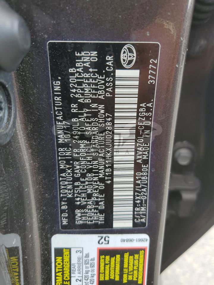 • VIN: 4T1B11HKXJU028847