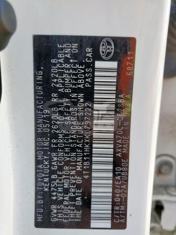 • VIN: 4T1B11HKXKU797222