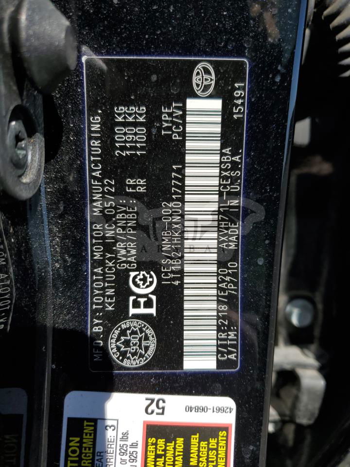 • VIN: 4T1B21HKXNU017771