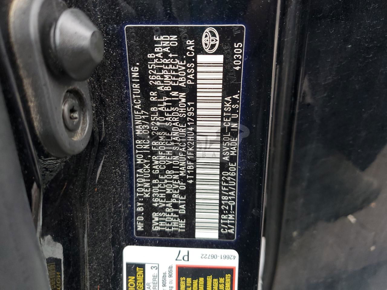 4T1BF1FK2HU417951