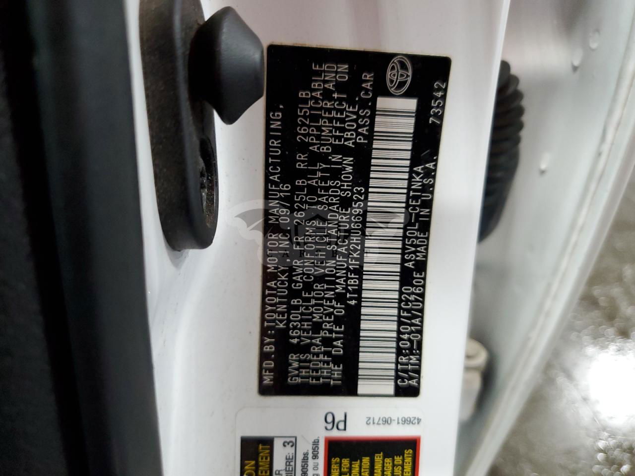 • VIN: 4T1BF1FK2HU669523