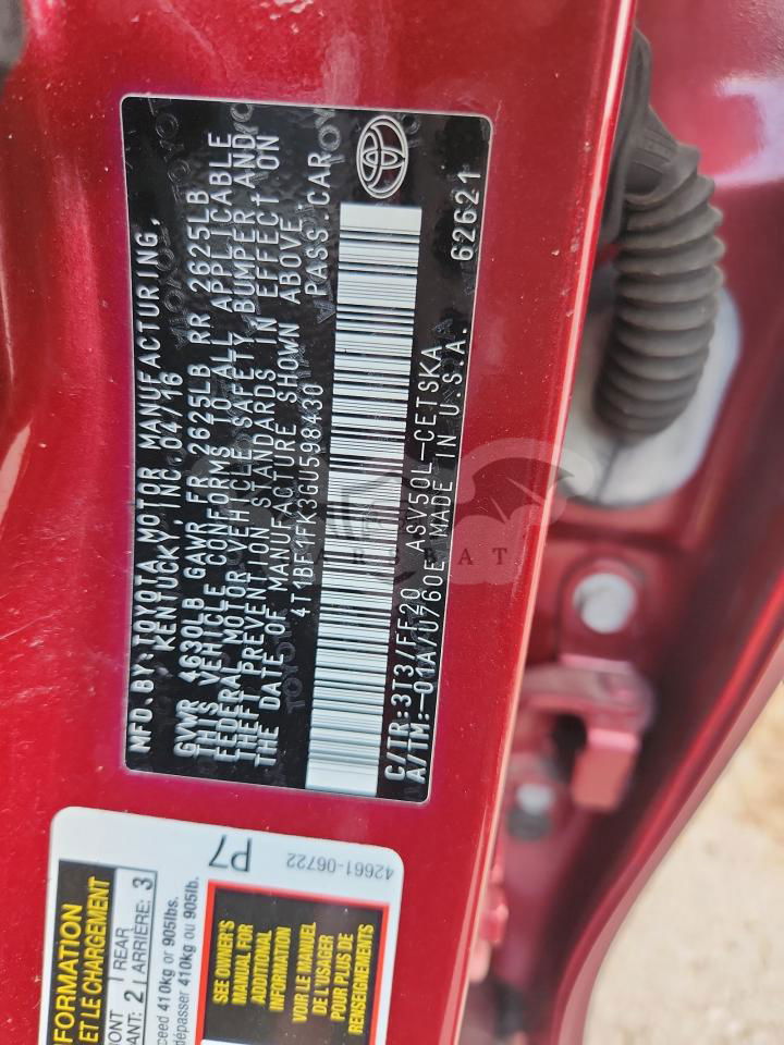 • VIN: 4T1BF1FK3GU598430