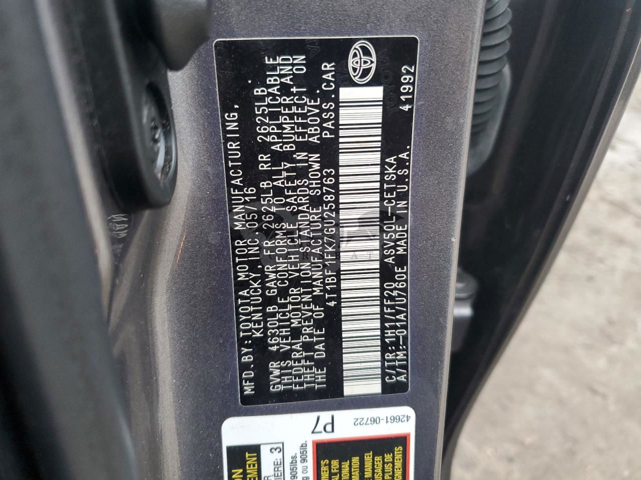• VIN: 4T1BF1FK7GU258763