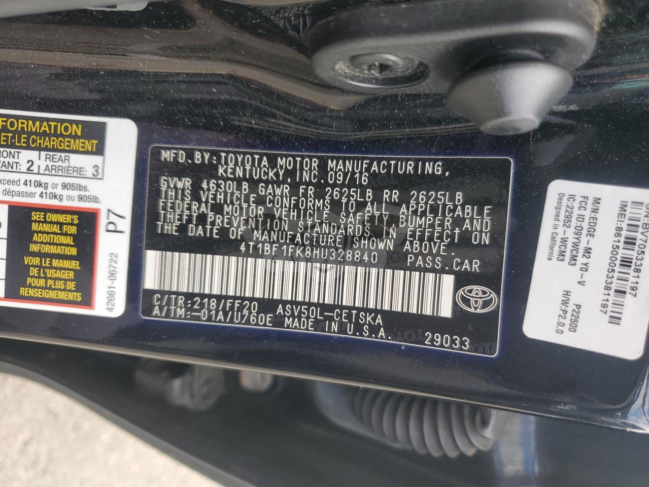 • VIN: 4T1BF1FK8HU328840