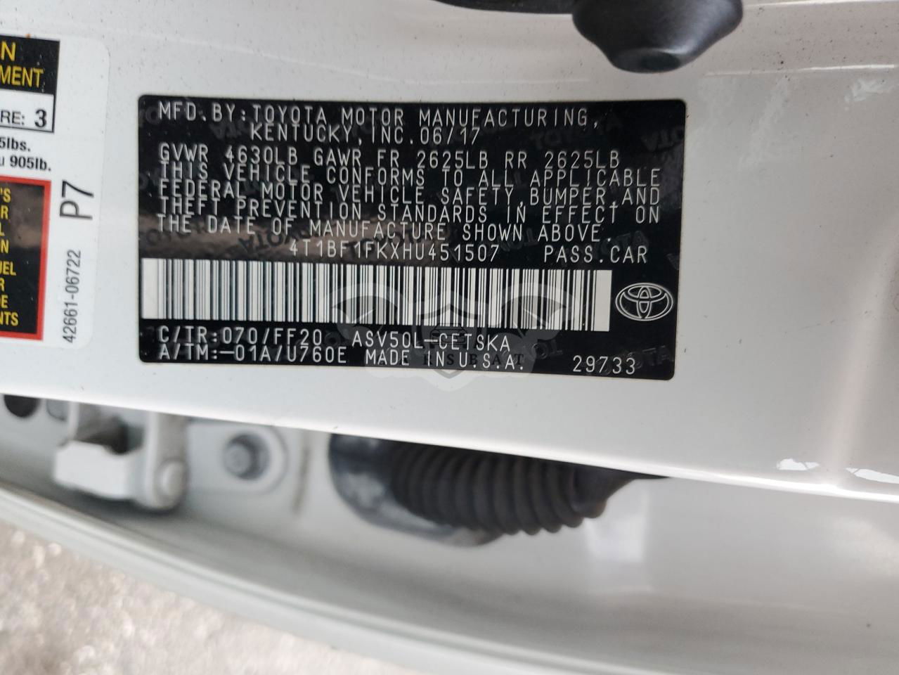• VIN: 4T1BF1FKXHU451507