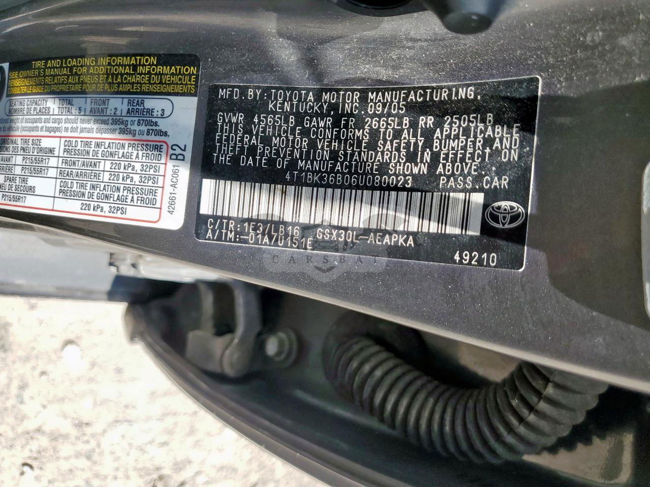 • VIN: 4T1BK36B06U080023