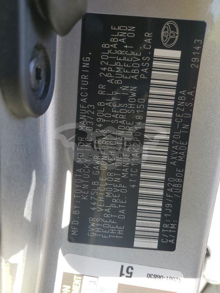 • VIN: 4T1C11AK2PU148150