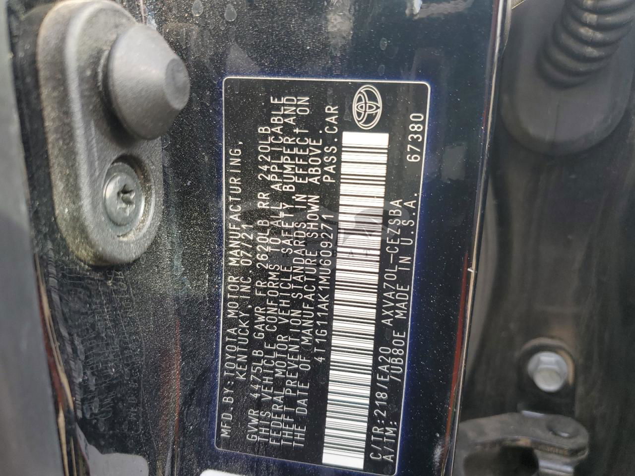 • VIN: 4T1G11AK1MU609271