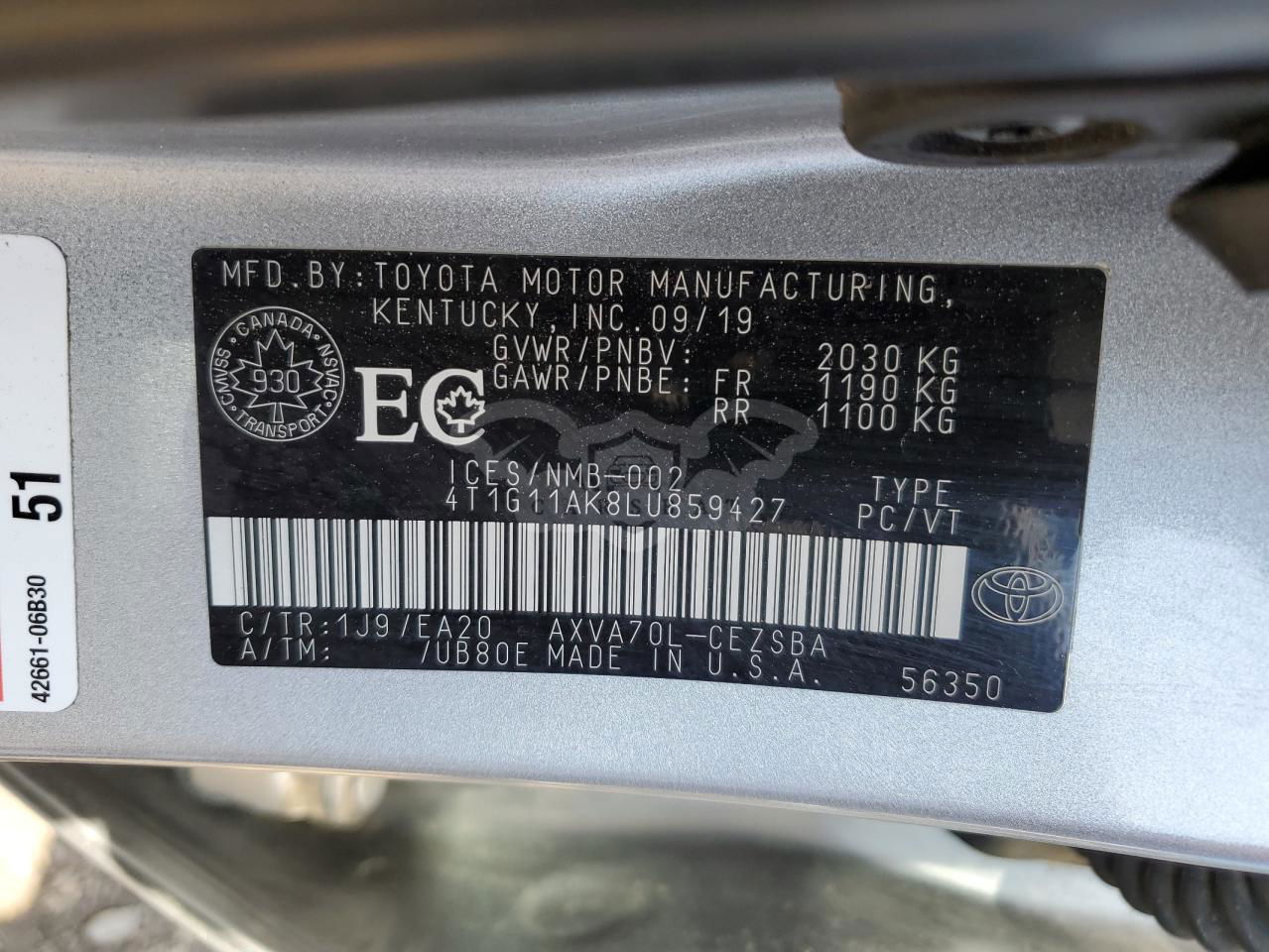 • VIN: 4T1G11AK8LU859427