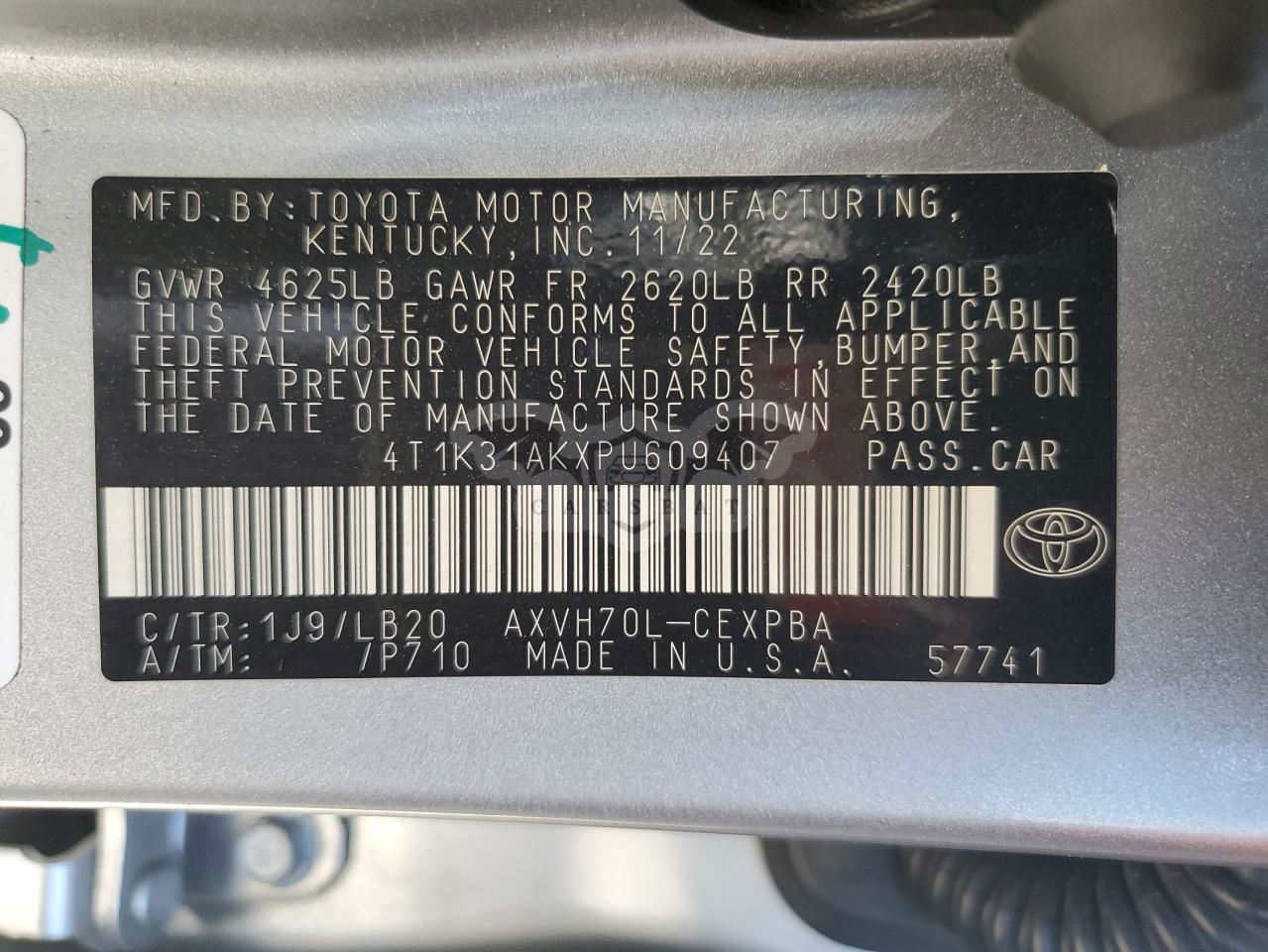 • VIN: 4T1K31AKXPU609407