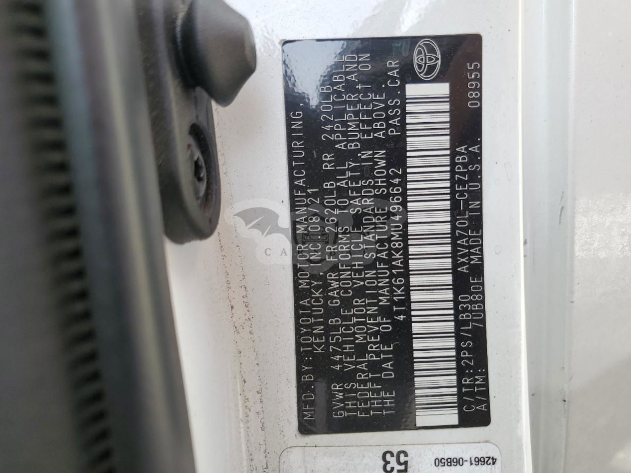• VIN: 4T1K61AK8MU496642